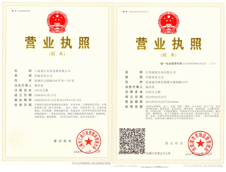 江蘇迷你光電有限公司(其前身為上海迷爾實業發展有限公司),于 2006 年成立,注冊資金達 3528 萬。2014 年,公司將運營總部遷至蘇州。