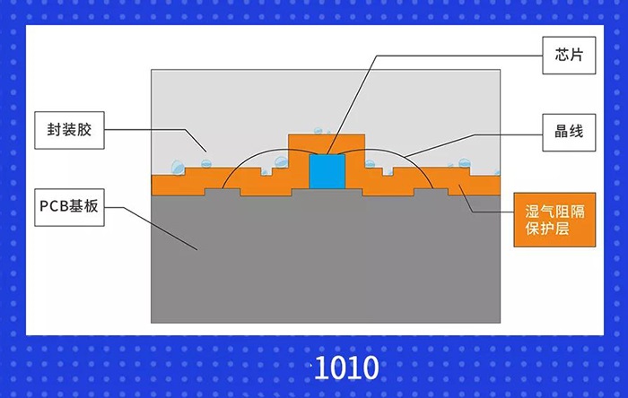 迷你MINILED1010著重從工藝方面隔離濕氣,一方面加強內(nèi)在“防護”,采用迷你獨立開發(fā)的全新封裝專利工藝,在封裝前在PCB、芯片、晶線表面涂膜一層濕氣阻隔保護層,阻隔濕氣滲入損壞器件,保護燈珠內(nèi)部各個器件不受濕氣影響;
