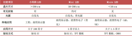 小間距LED、Mini LED、Micro LED對(duì)比