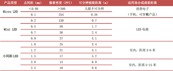 由于芯片尺寸存在差異,各種顯示技術(shù)應(yīng)用領(lǐng)域會(huì)有所不同,更小的像素間距意味著更近的觀看距離。