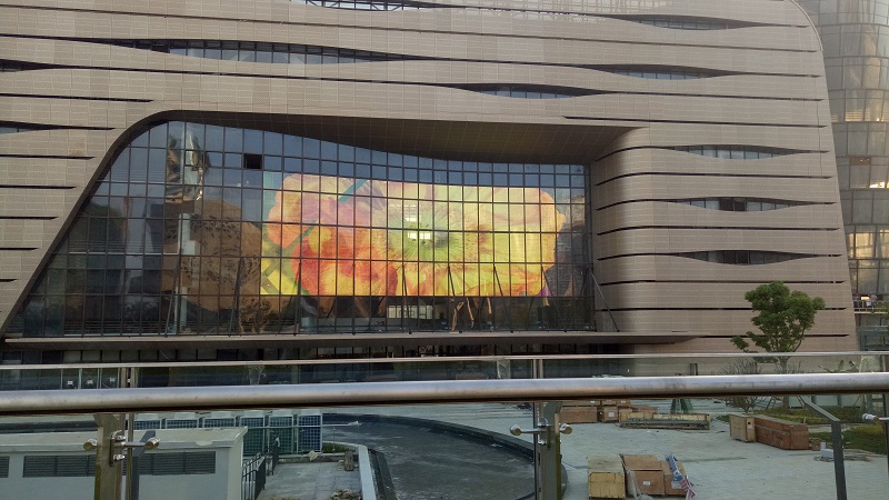 據了解,本次項目運用迷你P16系列透明屏,迷你透明屏融合了輕、薄、透的結構設計理念,顛覆了傳統顯示屏復雜的鋼架結構。它能夠針對不同的環境使用要求,不破壞建筑原結構,呈現出不同的形狀,與劇院現場的玻璃幕墻完美融合,無縫拼接,且屏體背部無任何結構,玻璃幕墻無需承重,安全系數極高。其通透的特性,不影響日常采光,隱形顯示,全方面觀看無死角,亮度可調節,流光溢彩的顯示畫面結合音樂營造了一種氣勢恢宏,具有現代科技感的震撼場面,賦予劇院建筑玻璃的靈動生氣,為劇院增添了一道亮麗的風景線。