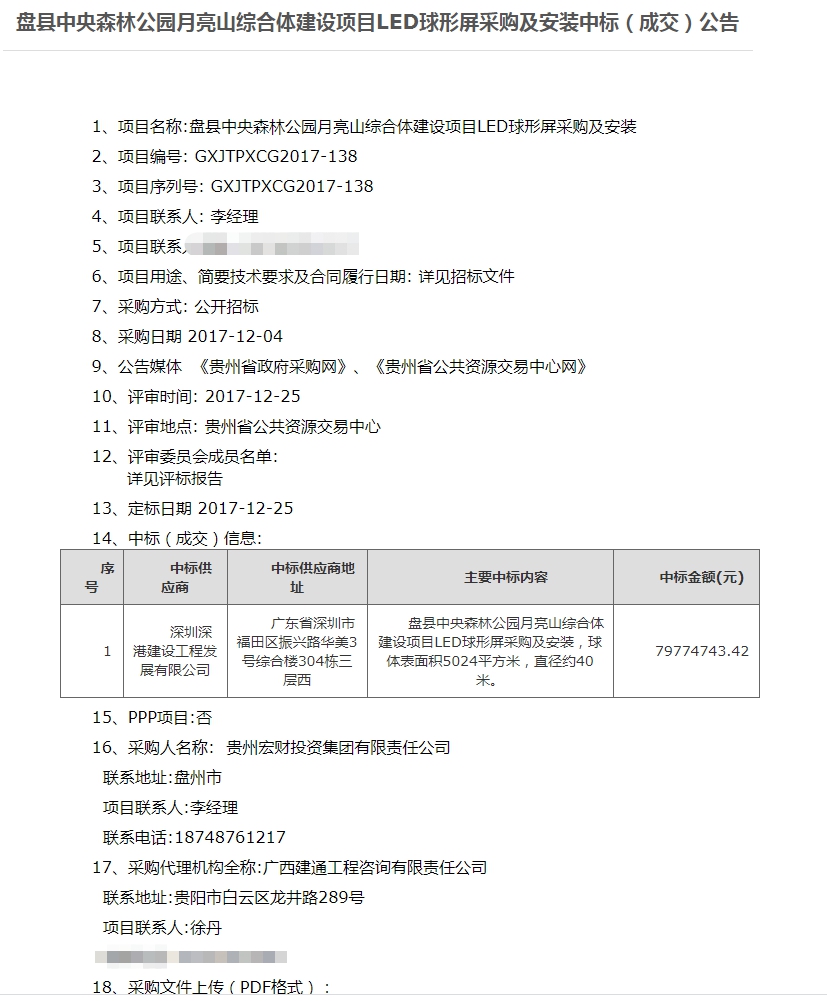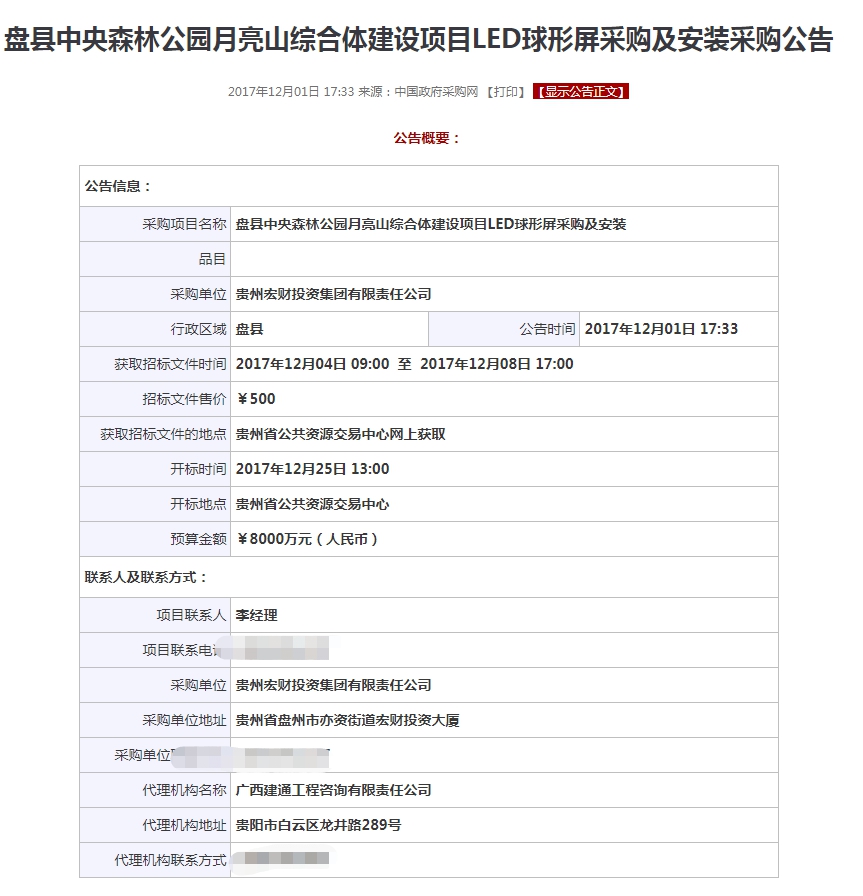 貴州宏財(cái)投資集團(tuán)有限責(zé)任公司,預(yù)算8000萬元采購5024㎡球型led屏幕