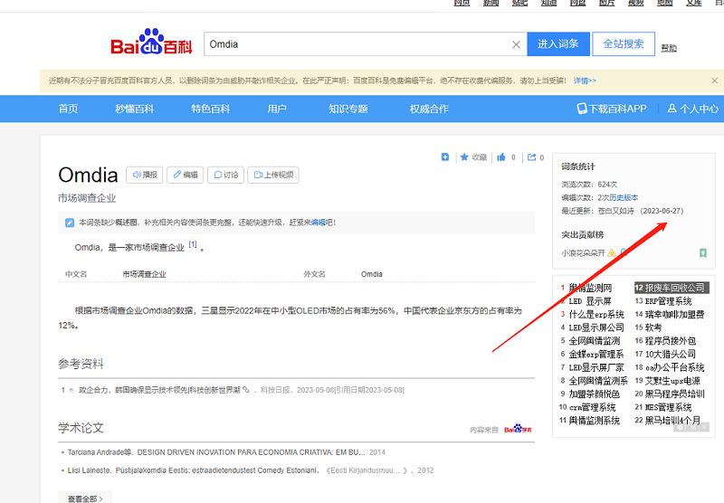 Omdia百度百科創(chuàng)建時(shí)間如下