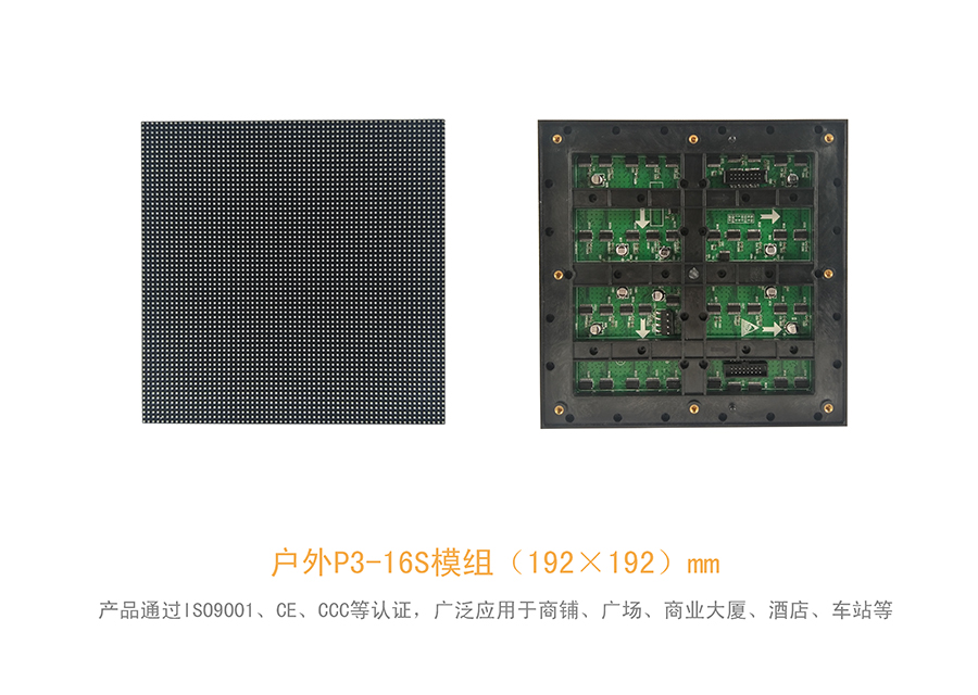 產(chǎn)品型號P P3 P4 P6 P8 P5 P10 模組組成 像素結(jié)構(gòu) SMD1919 SMD1919 SMD2727 SMD3528 SMD2525 SMD3535 像素間距(mm) 3 4 6 8 5 10 整屏分辨率(dot/㎡) 111111 62500 27777 15625 40000 100000 模組尺寸(mm)(W*H) 192*192mm 256*128mm 192*192mm 256*128mm 320*160mm 320*160mm 模組分辨率(W*H) 64*64dots 64*32dots 32*32dots 32*16dots 64*32dots 320*160dots 箱體組成 箱體尺寸(mm)(W*H*D) 768*798*95mm 960*960*95mm 960*960*95mm 箱體分辨率(W*H) 256*192dots 192*192dots 128*128dots 96*96dots 192*192dots 96*96dots 箱體重量(KG) 15±0.5KG 23±0.5KG 23±0.5KG 光學參數(shù) 白平衡亮度(nits) 4500-7500CD/㎡ 色溫(K) 3000-10000可調(diào) 可視角度(°) 水平視角160° 垂直視角140° 色度均勻性 ±0.003Cx,Cy之內(nèi) 對比度 7000:1 電氣參數(shù) 峰值功耗(W/㎡) 1350 1150 1000 1000 1150 1000 平均功耗(W/㎡) 420 385 320 320 385 320 供電需求 AC100-240V(50-60Hz) 處理性能 掃描方式 16S 恒流驅(qū)動 8S 恒流驅(qū)動 4S 恒流驅(qū)動 4S 恒流驅(qū)動 8S 恒流驅(qū)動 4S 恒流驅(qū)動 換幀頻率(Hz) 50&60 刷新頻率(Hz) 1920 使用參數(shù) 使用壽命 10萬小時 工作穩(wěn)定范圍 -10-40 儲存穩(wěn)定范圍 -20-60 產(chǎn)品認證戶外led顯示屏應用領域