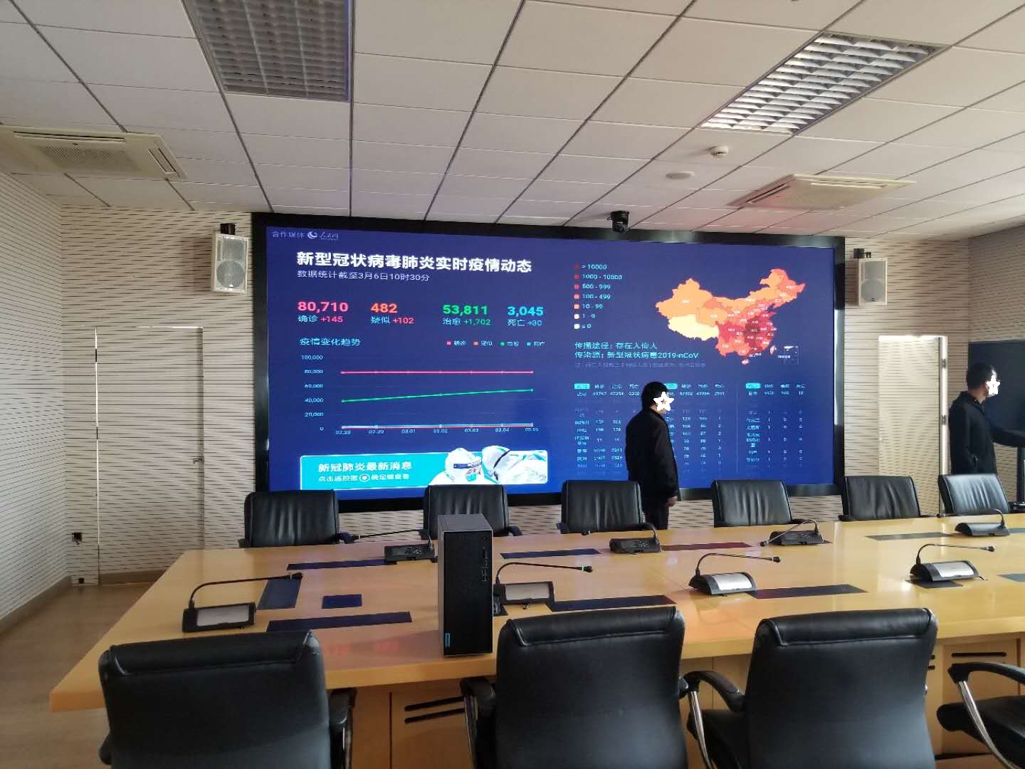 小間距13㎡,由于公司現貨供應年初5疫情爆發期開始施工,到年初10便已完成這一項目,甲方單位原來老設備是2003年非典期間建設的DLP設備,本次更換迷你光電P1.2