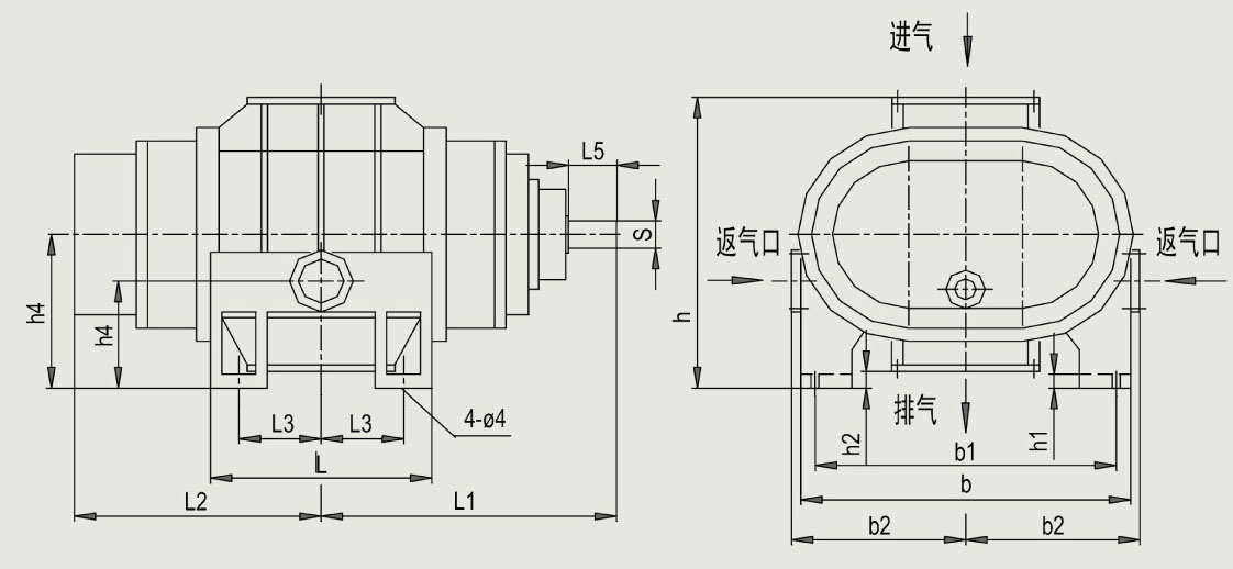ZJQ-7500/ZJQ-10000羅茨真空泵的排氣口法蘭尺寸與ZJQ-3750羅茨真空泵的進排氣口法蘭一致